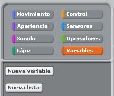 Observe que en el Área de Selección de bloques no aparecen nuevos bloques “fijar”, “cambiar”, etc., vinculados a esta nueva variable en especial: desde la versión 1.4 de Scratch estos bloques disponen de una lista desplegable que nos permiten seleccionar las variables existentes.