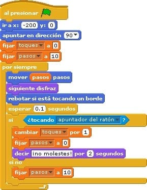 Como seguro ya está viendo, un bloque “cambiar [toques] por (1)” deberá ser colocado dentro de la estructura condicional, obviamente para ser ejecutado “solo si” la condición ¿tocando apuntador del ratón? es verdadera.